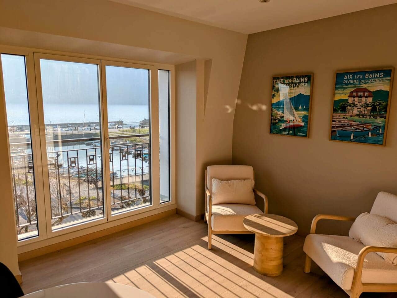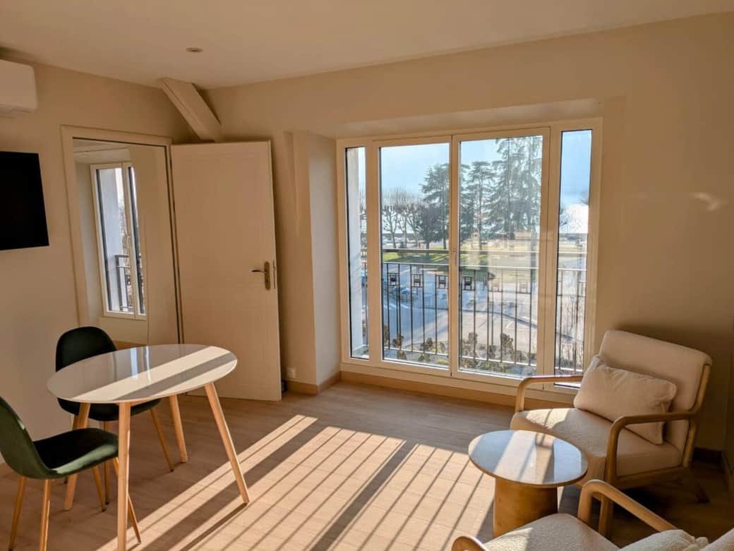 3ème étage face au lac : bénéficiez d'une vue plongeante sur le petit port à barques du Tillet ainsi que sur la Dent du Chat