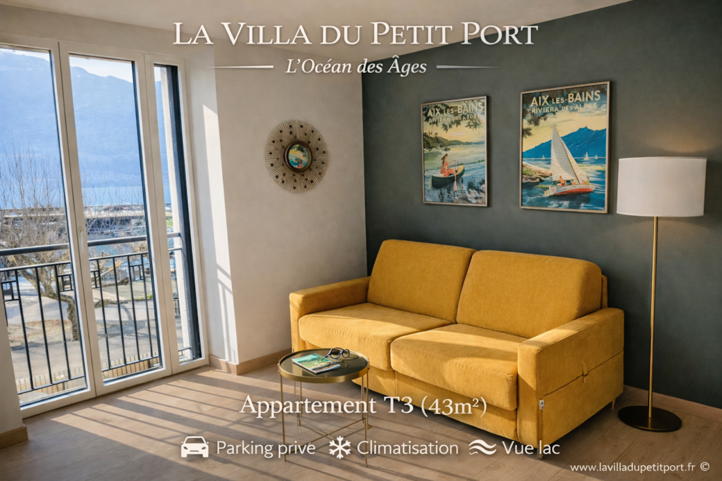 2ème étage face au lac : bénéficiez d'une vue plongeante sur le petit port à barques du Tillet ainsi que sur la Dent du Chat